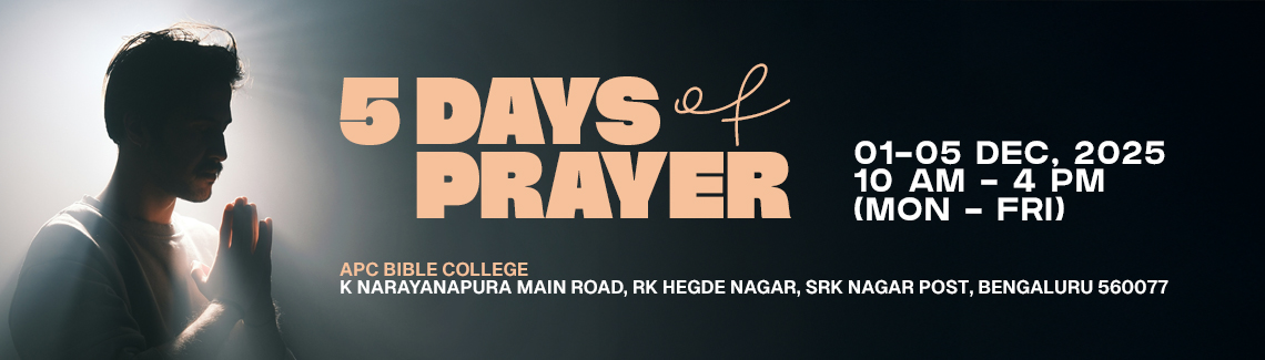 All Peoples Church in Bangalore is a Spirit-filled, Word-based, Bible-believing Christian fellowship of believers in Jesus Christ desiring more of His presence and supernatural power bringing transformation, healing, miracles, and deliverance. We preach the full Gospel, equip believers to live out our new life in Christ, welcome the Charismatic and Pentecostal expressions in the assembly of God and serve in strengthening unity across all Christian churches. All free resources, sermons, daily devotionals, and free Christian books are provided for the strengthening of all believers in the Body of Christ. Join our services live at APC YouTube Channel. For further equipping, please visit APC Bible College.